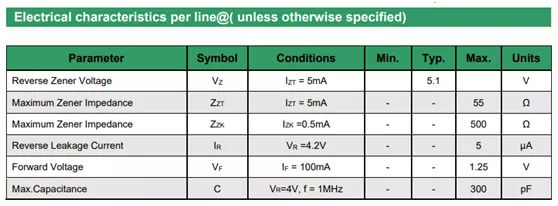 下圖是某一穩(wěn)壓管的SPEC截圖,可以一起來看一看這些參數(shù)。